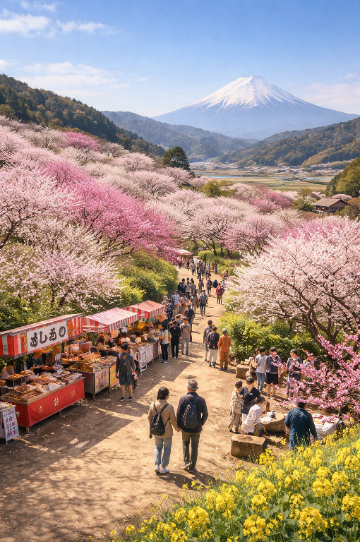 During the Odawara Plum Festival, local food stalls and small events add warmth to the peaceful landscape. Visitors can taste ume-flavored sweets and regional specialties while walking among the trees. Unlike large urban flower festivals, this event keeps a relaxed and local atmosphere, allowing people to enjoy nature at a slow and comfortable pace.